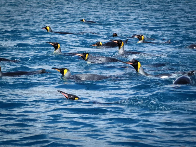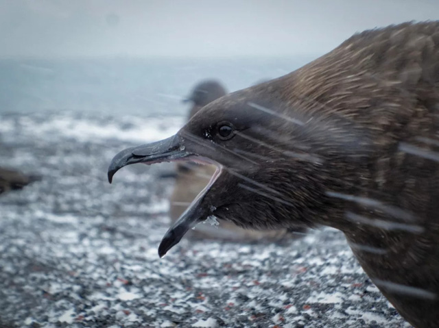 在南极,他会坐在冰雪上,等待王企鹅贴近,拍摄王企鹅羽毛的细部;