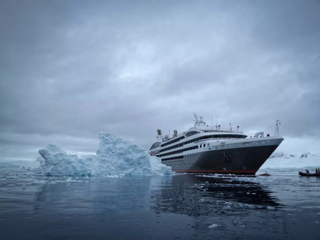 在北极,他会从直升飞机上用手机航拍世界上最强大的破冰船破冰航行;